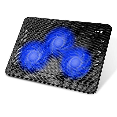 Havit HV-F2056 15.6-17 Inch Laptop Cooler Cooling Pad - Slim Portable USB Powered (3 Fans) (Black+Blue)