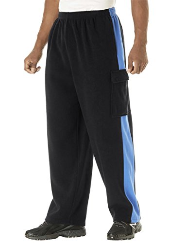 KingSize Men's Big & Tall Explorer Fleece Stripe Cargo Pants, Black Big-3Xl