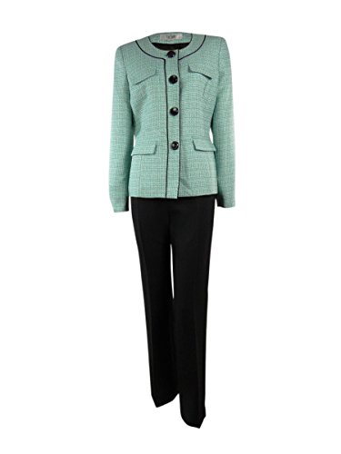 Le Suit Women's Petite Water Lilies Jacket & Pants Suit 4P Seafoam Black