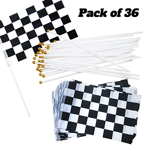 Dazzling Toys 36 Pack Black and White Checkered Racing Flags | Great for: Decorations for Racing, Race Car Party, Sport Events, Theme Party About Racing or Car, and More