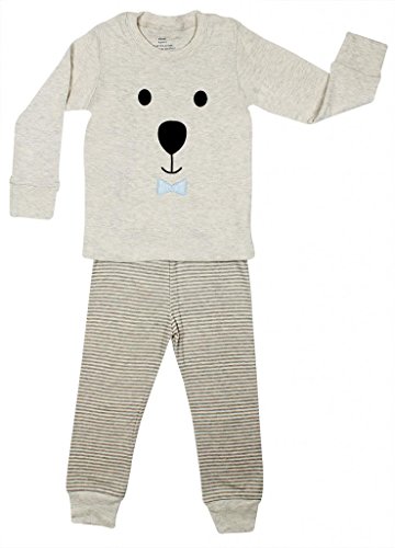 Elowel Teddy Bear Face 2 Piece Pajama Set 100% Cotton - Size 8 Grey