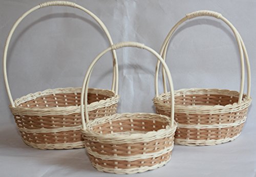 RT410547BR-3: WICKER/RATTAN FLOWER BASKETS OR EASTER BASKETS OR GIFT BASKETS IN BROWN DOUBLE BAND ON CREAM DESIGN