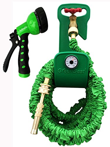 Greenbest Expandable Garden Hose,Green 50 Feet, 5/8 Diameter, Brass Sprayer and Couplings (Grass green)