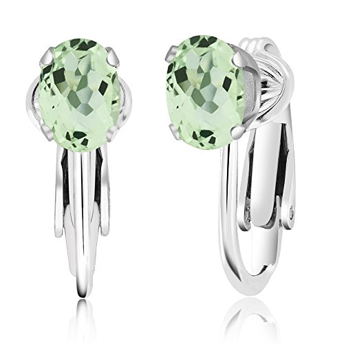 Gem Stone King 1.50 Ct Oval Green Prasiolite 925 Sterling Silver Clip-On Earrings