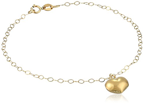 14k Yellow Gold Italian Heart Charm Bracelet, 7"