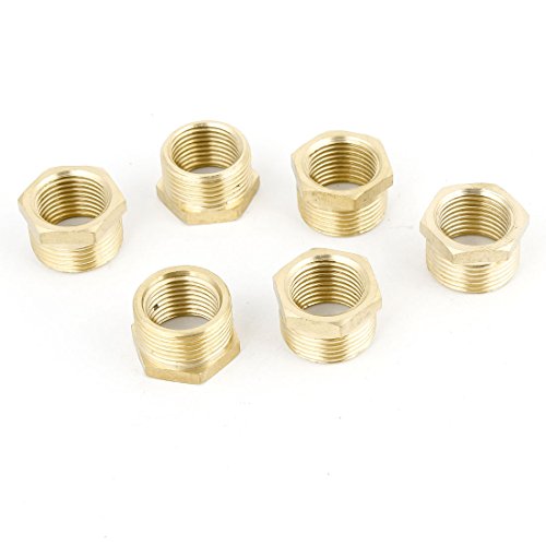 uxcell 6pcs Brass 1/2PT Female to 3/4PT Male Thread Hex Reducer Bushing