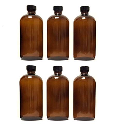 8 oz Boston Round Glass Amber Bottle With Ploy Seal Cap and One Funnel (6 pcs)