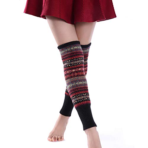 Springwell Women's Cable Knit Leg Warmers in Multiple Style and Colors (Standard Size, Bohemia-black)