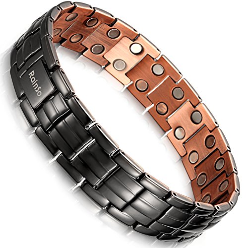 Rainso Mens Matt Gun Black Copper Double Row Magnetic Therapy Bracelets for Arthritis Wristband Adjustable (Titanium)