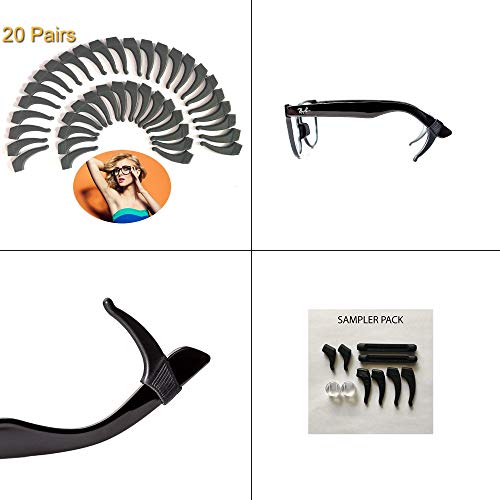 20 PAIRS Keepons Superstretch Black Prevent Eyeglass Slipping Anti Slip Anti Slide Eyewear Sunglasses Spectacles Glasses Temple Tips Sports Ear Hooks Sleeves Retainer + assorted 5 PAIR Sampler Pack