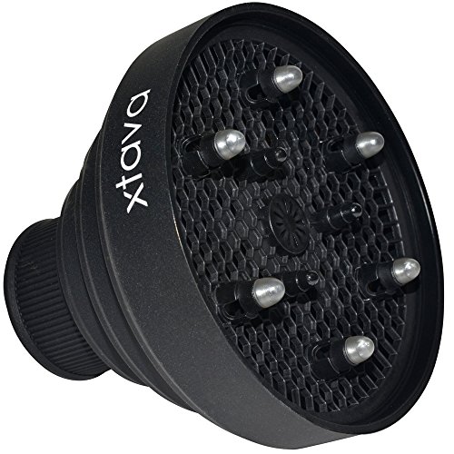 xtava Collapsible Silicone Hair Diffuser for Blow Dryer - Smart Folding Design for Easy Carrying and Storage, Black