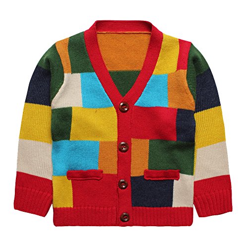 eTree Boys' Colored Lattice Cardigan Cashmere Knitting Sweater 2-5 Years