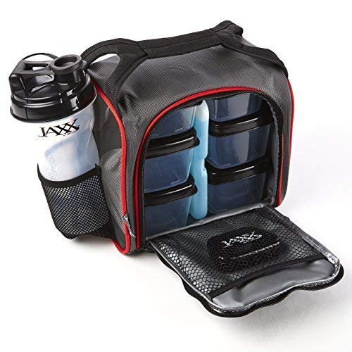 Fit and Fresh 944FFJX186C Original Jaxx FitPak Insulated Cooler Lunch Box, Meal Prep Bag with Portion Control Containers, Ice Pack, 28 oz Shaker, Standard, Red & Black