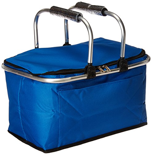 Insulated Folding Picnic Basket -Insulated Cooler with Carrying Handles (Navy)
