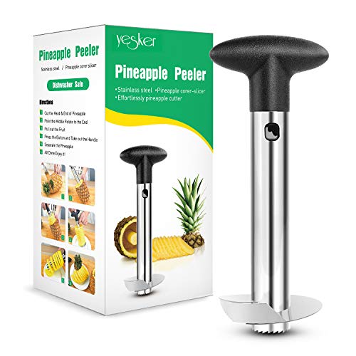 Yesker Silver Stainless Steel Pineapple Corer Peeler Stem Remover Blades for Diced Fruit Rings All in One Pineapple Tool Peeler Slicer