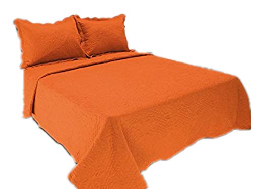 ALL FOR YOU 3PC Reversible Quilt Set, Bedspread and Coverlet-Orange Color (Orange, Full/Queen)