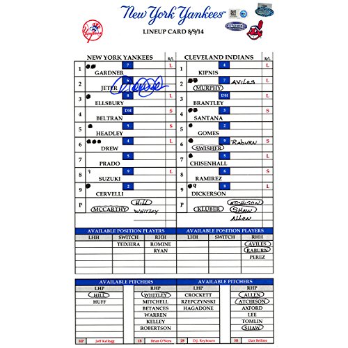 "Derek Jeter Authentic Hand Signed Indians at Yankees 8-09-2014 Authenticated Game Used Lineup Card (MLB, Major League Baseball, Authenticated)"