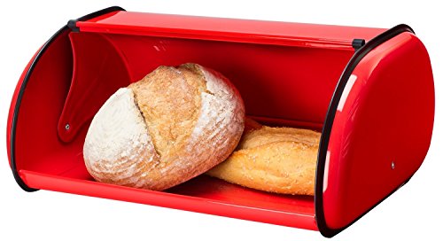 Greenco Stainless Steel Bread Bin Storage Box, Roll up Lid (Red)