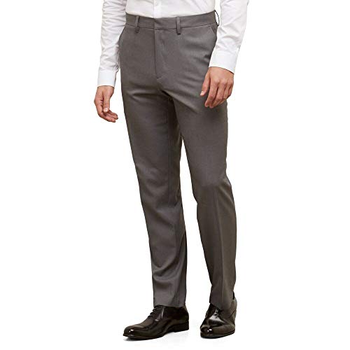 Kenneth Cole REACTION Men's Stretch Modern-Fit Flat-Front Pant, Dark Grey, 38x32