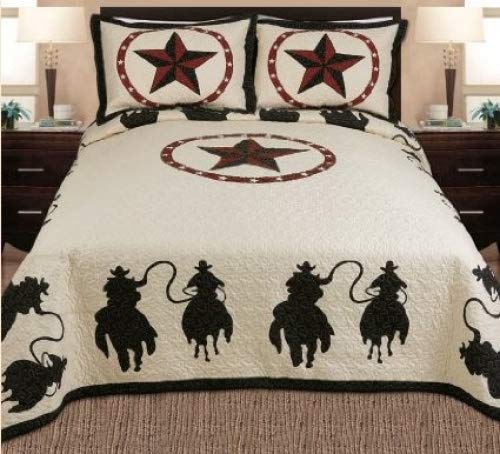 Fancy Collections 3-piece Western Horse Rider Cabin / Lodge Quilt Bedspread Coverlet Beige, Black (Full/queen)