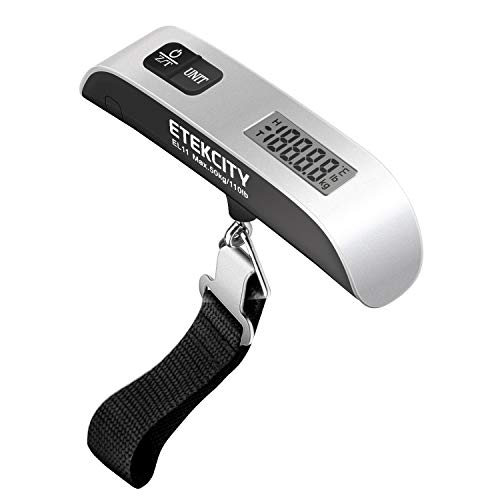 Etekcity Digital Hanging Luggage Scale, Portable Handheld Baggage Scale for Travel, Suitcase Scale with Rubber Paint, Temperature Sensor, 110 Pounds, Battery Included
