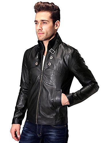 OCHENTA Men's Winter Slim Fit Stand Up Collar Faux Leather Jacket