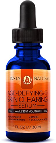 InstaNatural Vitamin C Anti Aging Skin Clearing Serum - Wrinkle, Cystic Acne, Fine Line, Pigmentation, Pore Minimizer & Dark Spot Corrector for Face - Retinol, Hyaluronic, & Salicylic Acid - 1oz