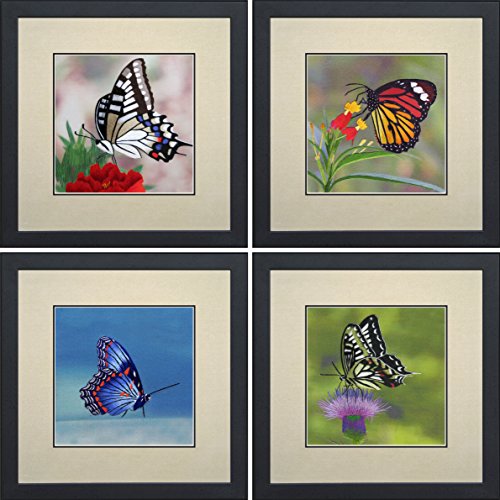 King Silk Art 100% Handmade Embroidery Mixed Group Colorful Butterfly on Flowers Chinese Print Large Framed Whildlife Butterfly Painting Gift Oriental Asian Wall Art Decoration Artwork Hanging Picture Gallery 33012WF+33016WF+33018WF+33023WF