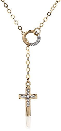 14k Yellow Gold Diamond (1/10cttw, H-I Color, I2-I3 Clarity) Cross Lariat Y-Shaped Necklace, 17"