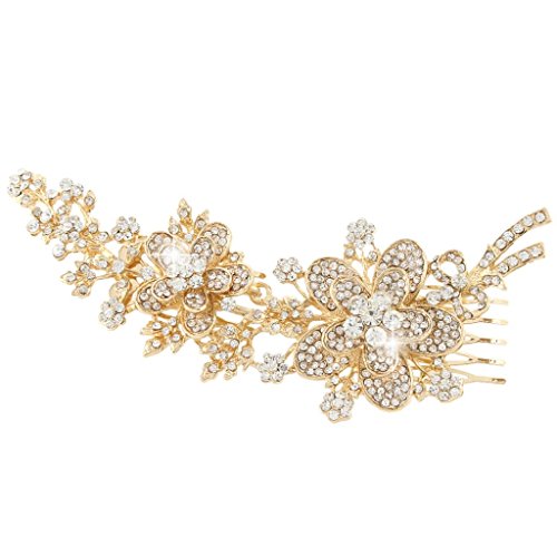 EVER FAITH 6 Inch Flower Leaf Bowknot Hair Comb Clear Austrian Crystal