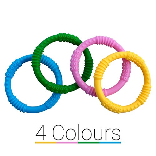 The Original Baby Teether Rings [4 Colors] Soother Infant Teething Toy - Dental Molar Pacifier - BPA Free Babyshower Gift