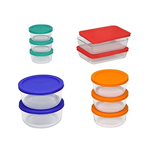 Pyrex Storage Set, Clear, Red, Orange, Blue, Green(20 Pieces)