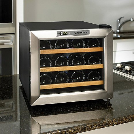 Wine Enthusiast 272 02 13W Stainless Steel/Wood Shelves Silent 12-Bottle Wine Cooler, Stainless