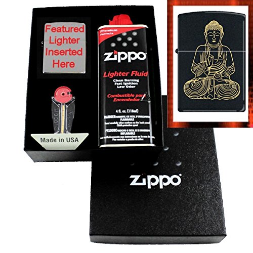 "Buddha - The Enlightened One" Black Matte Zippo Lighter Gift Set