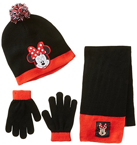 Berkshire Big Girls' 3 Piece Minnie Mouse Pom Beanie Glove and Scarf Set, Multi, One Size