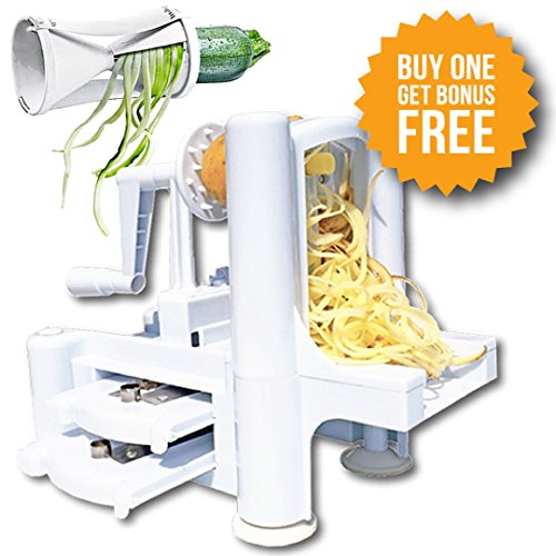 Spiral Slicer Tri-Blade Vegetable Spiralizer Complete Bundle - Best Zucchini Pasta Noodle Spaghetti Maker + FREE Bonuses