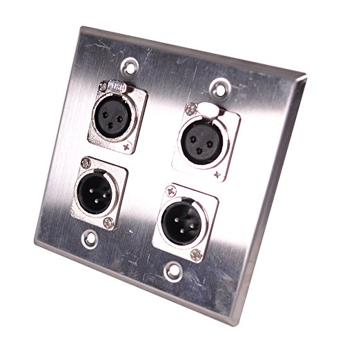 Seismic Audio SA-PLATE39 Stainless Steel Wall Plate 2 Gang with 2 XLR Male and 2 XLR Female Connectors