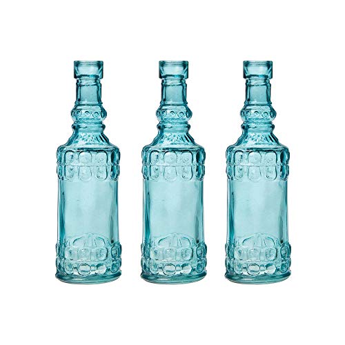 Luna Bazaar Small Vintage Glass Bottle Set (6.5-Inch, Calista Cylinder Design, Turquoise Blue, Set of 3) - Flower Bud Vase Set - for Home Decor and Wedding Centerpieces
