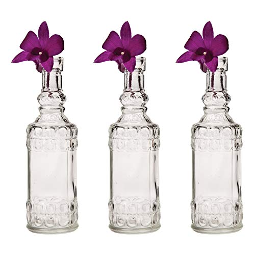 Luna Bazaar Small Vintage Glass Bottle Set (6.5-Inch, Calista Cylinder Design, Clear, Set of 3) - Flower Bud Vase Set - for Home Decor and Wedding Centerpieces