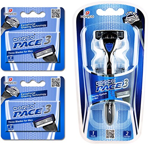 Dorco Pace 3- Three Razor Blade Shaving System- Value Pack (10 Cartridges + 1 Handle)