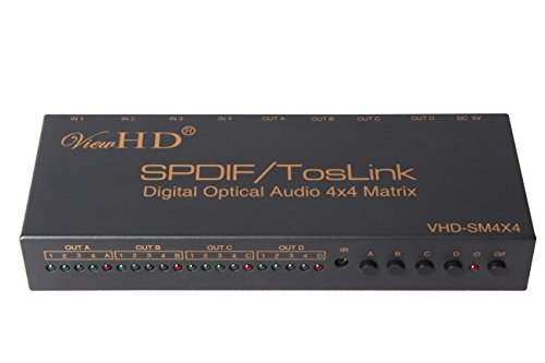 ViewHD SPDIF/TOSLINK Optical Digital Audio 4x4 True Matrix with Remote Control | VHD-SM4X4
