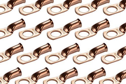 TEMCo 25 Lot 6 AWG Ring 3/8" Hole Terminal Lug Bare Copper Uninsulated Gauge