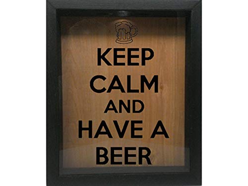 Wicked Good Decor Wooden Shadow Box Wine Cork/Bottle Cap/Tickets 9x11 - Keep Calm and Have A Beer with Mug (Ebony w/Black)