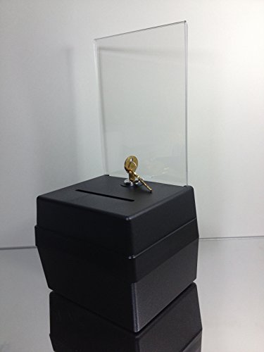Black Acrylic Charity / Donation / Ballot / Tip Box Container with 5.5"wx7"h Header Sign Holder with High Quality Cam Lock