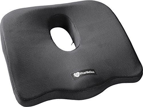 PharMeDoc Coccyx Pillow - Tailbone Pain Cushion - Seat Cushion for Back Pain - Memory Foam Pillow for Pain Relief - 2016 Design - Car Seat Cushion / Wedge - Office, Travel, Wheelchair & more