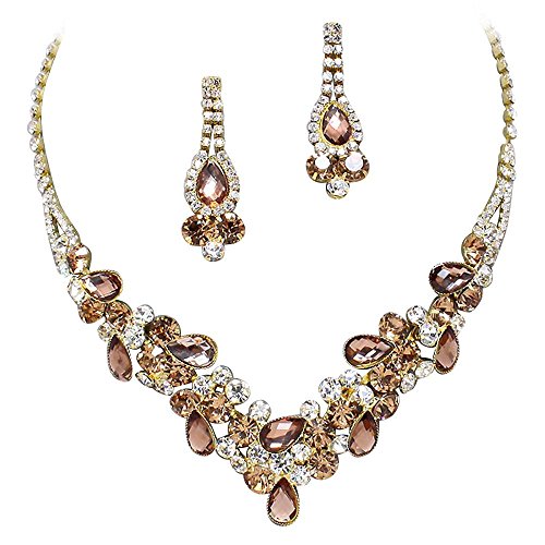 Elegant Bronze Brown V-Shaped Garland Prom Bridesmaid Evening Necklace Set K2