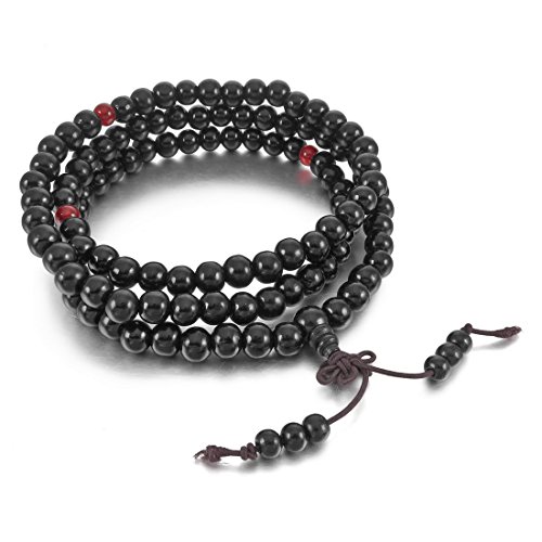 INBLUE Men,Women's 8mm Wood Bracelet Link Wrist Necklace Chain Tibetan Buddhist Black Sandalwood Bead Prayer Buddha Mala Chinese knot Elastic