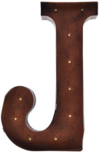 The Gerson Company""J LED Lighted Metal Letter with Rustic Brown Finish