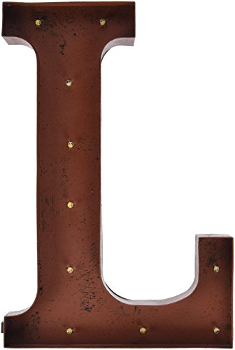The Gerson Company" L LED Lighted Letter with Rustic Brown Metal Finish and Timer Function