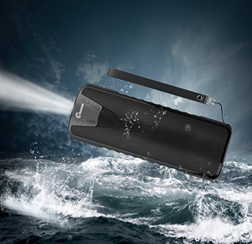 POWKER Bluetooth V4.0 Wireless Stereo Waterproof Outdoor Shower Speaker,20 Hours Play Time with USB Power Output (Black)